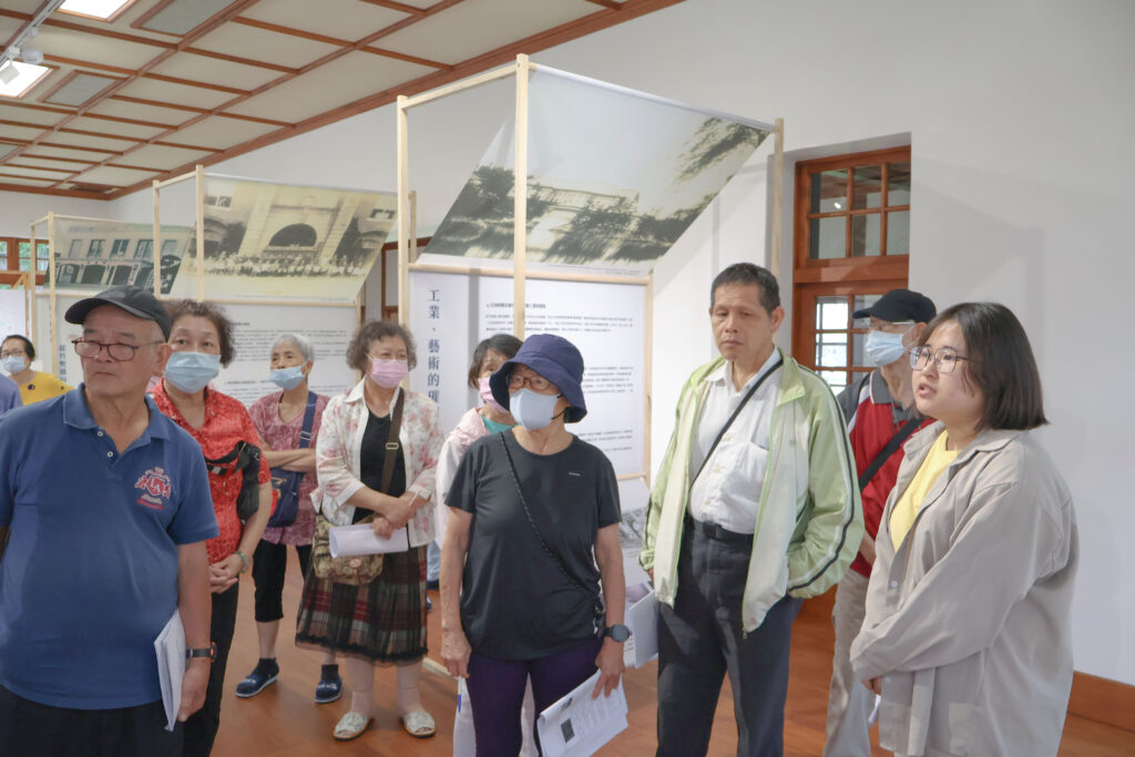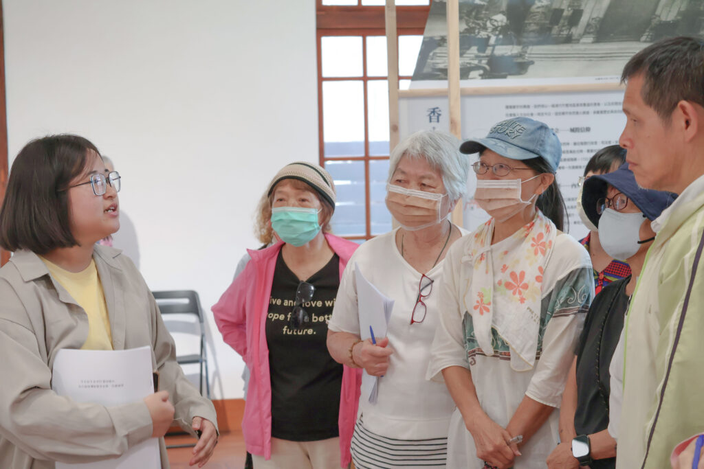 圖一/策展同仁-雄本老屋臺北規劃三部專員林筱芳(左一)向志工說明展覽內容。