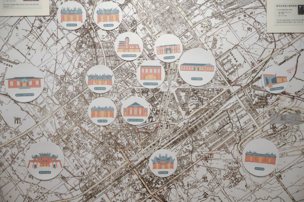在特展主視覺背面,「博覽風城」城市旅遊地圖將展覽中提及的館舍串連成線,以 1938 年的新竹都市計畫圖為基礎,規劃了信仰、眷村、藝文、現代化設施等主題路徑,引導觀者穿梭於習以為常的城市街廓,從磚瓦之間閱覽風城百年。展期將持續至 11 月 30 日,誠摯邀請您前來新竹少年刑務所演武場,在此細細品讀新竹地區的建築歷史,再循著這份地圖親自走讀它的精彩。