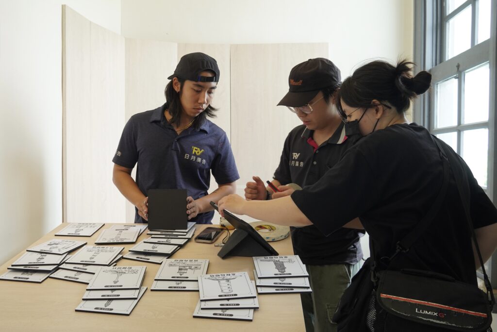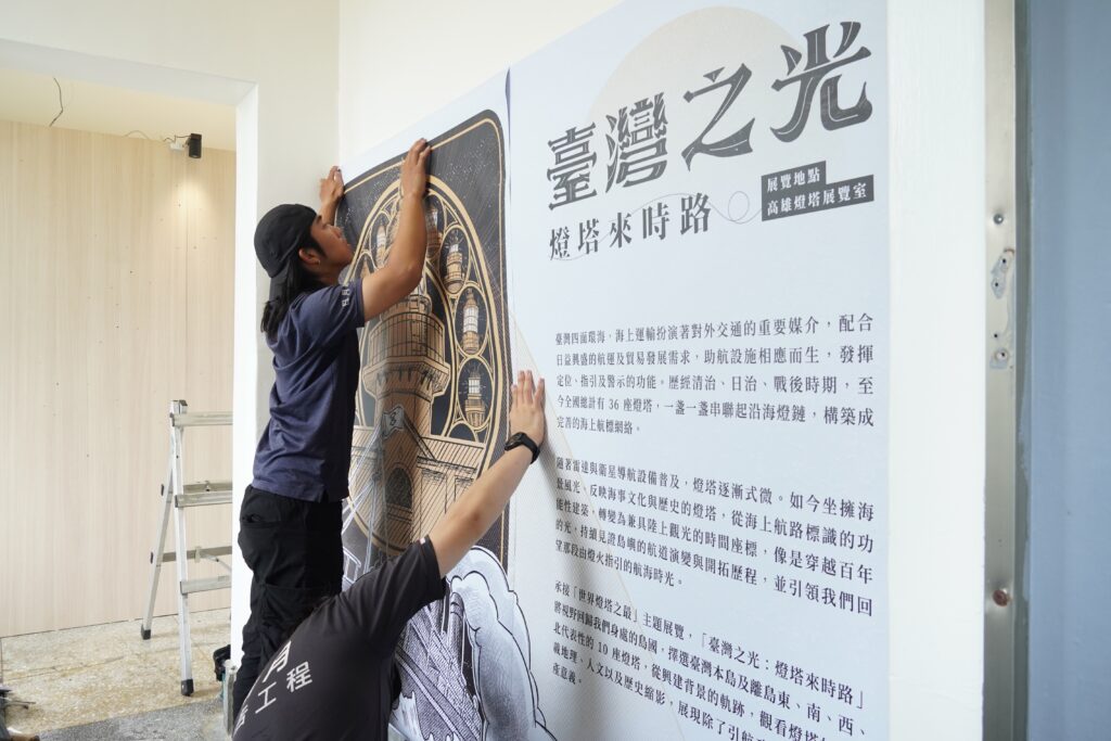 圖二、圖三/感謝協力廠商「日月廣告」,與雄本老屋一同為「臺灣之光」特展做最後的準備。