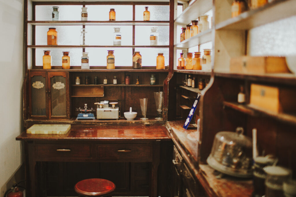 ▲左圖/長源醫院曾為鹿港名醫許讀的工作與居住場域,過去的藥櫃與配藥器具仍保留於一進空間之中。