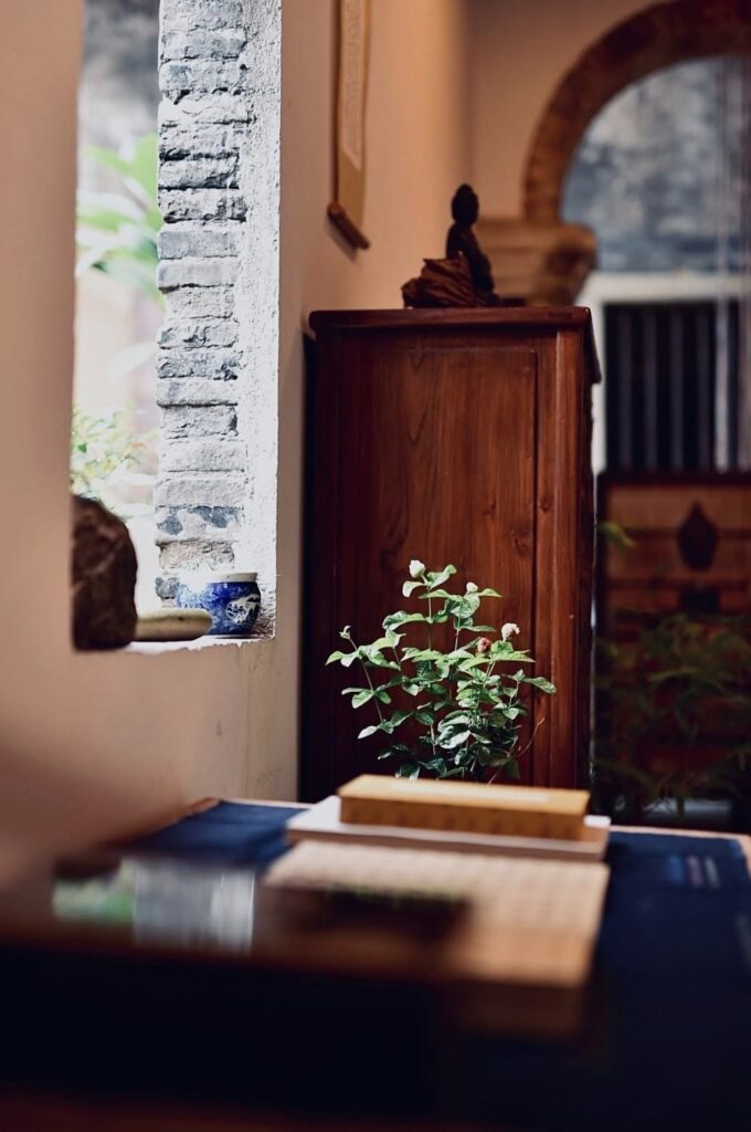 在與公部門、營造廠溝通的過程中,古正君女士始終謹記父親的精神,順應宅院經歲月洗鍊而古樸殘缺的姿態,因此並未重新粉刷牆面、增設支柱,而是仔細留存當中的使用痕跡,更將經年累月而腐朽、破損的木樑與瓦片再造為家飾品,形塑出極具「侘寂」美感的空間氛圍。2019 年完成全棟修復後,源古本舖以「常民文化館」的身份重新出發,將任一處桌椅、牆角與廊道皆視為展示區域,透過一檔檔藝文展覽、活動的籌劃,重新牽起古宅與大溪居民之間的連結。