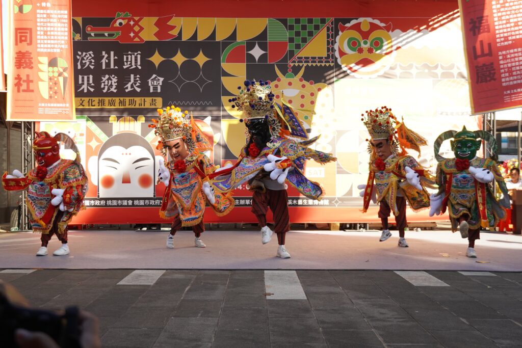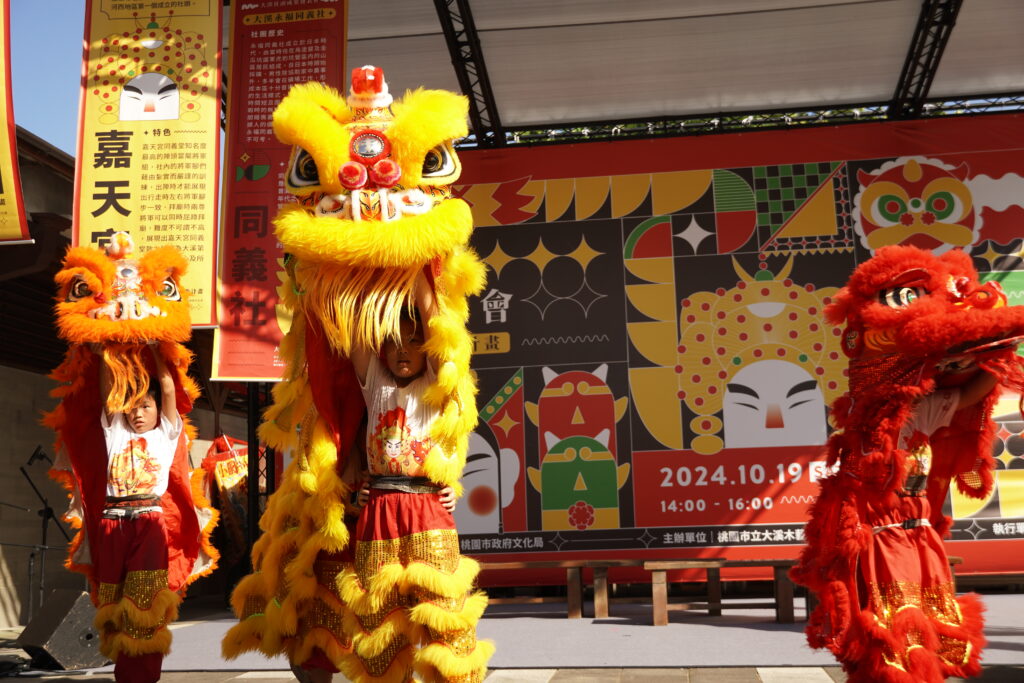作為開場表演,大溪國小民俗獅隊以舞獅的靈動姿態揭開序幕,色澤鮮麗的獅頭上綴有獨角與鏡面,隨著孩子們的步法搖曳生輝,靈活轉動的眼、耳與吻部展現豐富的表情,栩栩如生地演繹出兩對獅子從相遇、衝突到最終和解的故事。大溪國小獅隊由「鎮風社」洪順福社長成立,傳承南獅中的鶴山獅體系,藉由教育單位的引導,讓年輕世代在日常生活中接觸民俗文化。