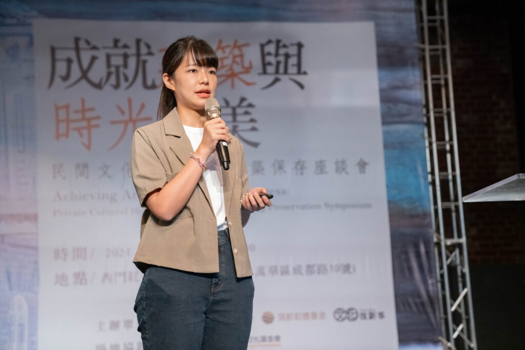 圖一/潘宜珣分享了潘錦河故居的再生經驗,以及她投入老屋修繕領域的心路歷程。(影像來源/頂新和德文教基金會 提供)