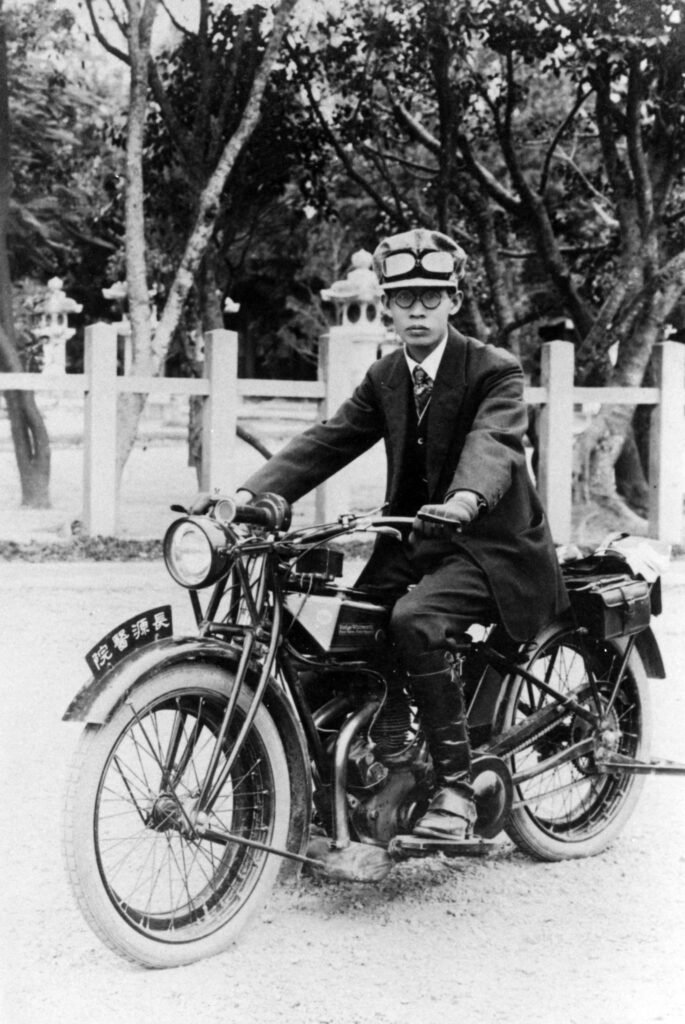 圖一/許讀與鹿港第一輛摩托車,前輪外罩掛有「長源醫院」標誌。(影像來源/許正園 提供)