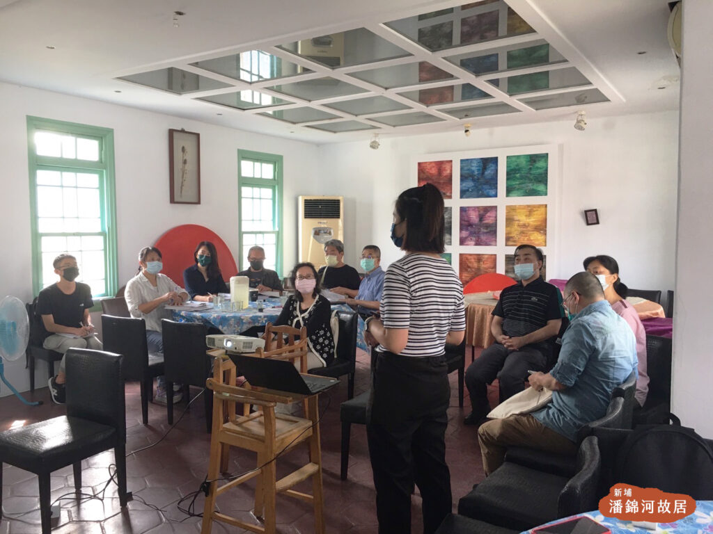 潘宜珣正與文化部長官及委員報告「私有老建築保存再生計畫-新埔潘錦河故居」推展進度。(影像來源/潘宜珣 提供)