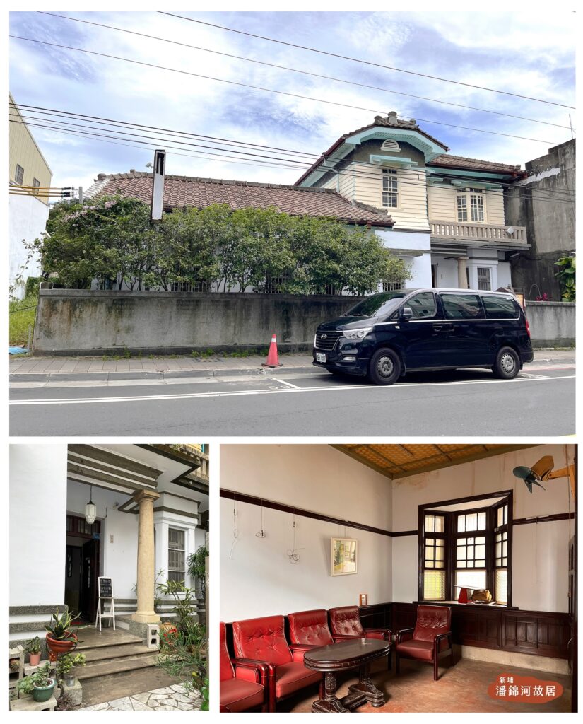 坐落於新埔鎮核心街區的「潘錦河故居」,是 1935 年屯子腳大地震後重建的建築,由日本留學歸國的屋主潘錦河先生親自設計而成。建物以凸窗、切角頂式屋頂與多立克柱式,編織出洋式立面,待客空間也延續外觀的摩登風格;走進洋樓內部,和式座敷、漢式染房與穀倉等古樸的生活空間依舊,體現著日治時期仕紳同時具備新式思維與傳統精神的複合特質。作為地方富紳、老鎮長的宅第,這座洋樓曾接待如白崇禧將軍、陳誠等活躍於近代史舞台的人物來訪,為空間更添歷史厚度。