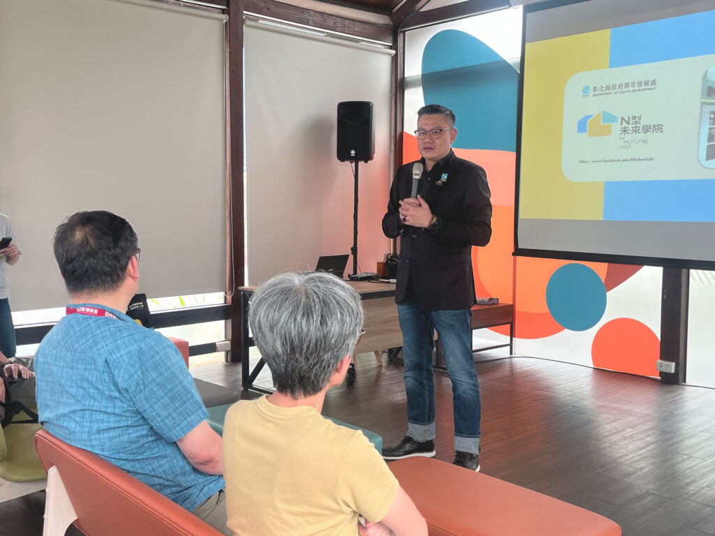 ▲彰化縣政府青年發展處黃金樺處長(右圖右一),與參訪隊伍分享「N 型未來學院」的定位與展望。