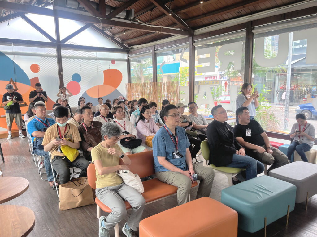 這次參訪我們邀請到營運團隊「大愛照顧服務勞動合作社」林秀如執行長,從起初打造青銀共好長照空間的美好願景,到最終在現行規範下不得不妥協的心路歷程說起,談論文化資產再利用的諸多限制與挑戰。儘管高賓閣最終無法陪伴長者度過晚年時光,在團隊進駐的三年間卻早已迎來新生:一樓的商業空間聚集了眾多在地特色品牌,不定期舉辦的活動、市集與藝文展演,也重新牽起了這座老建築與城市生活的互動。