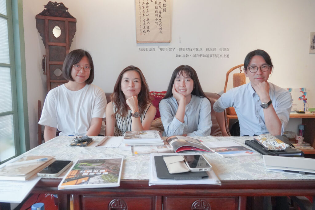 蘇莞婷執行長(左二)與雄本老屋團隊於訪談地點-同為山海屯經營空間的「長泰西藥房」合影。