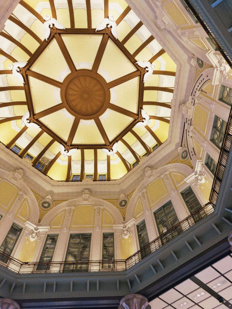 圖一/丸之內車站大樓以其華麗的穹頂設計聞名,從當中面朝左方、抓握稻穗的海鷹雕飾,以及八個角落設置的生肖圖騰,皆可見設計者揉合東西方裝飾語彙的巧思。