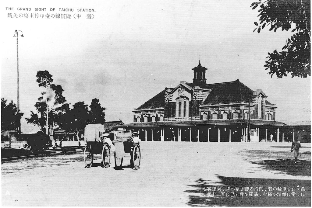 第二代臺中車站舊貌,約攝於 1931 年。這座老車站與丸之內車站大樓同屬辰野風格建築。(影像來源/臺中市政府文化局典藏)