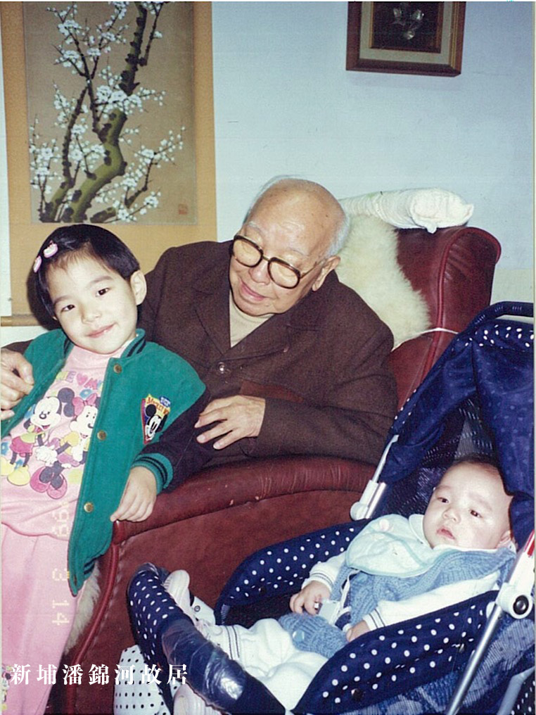 右圖/潘錦河先生(左二)與曾孫女潘宜珣(左一)與其弟(左三)在洋樓中的合照。