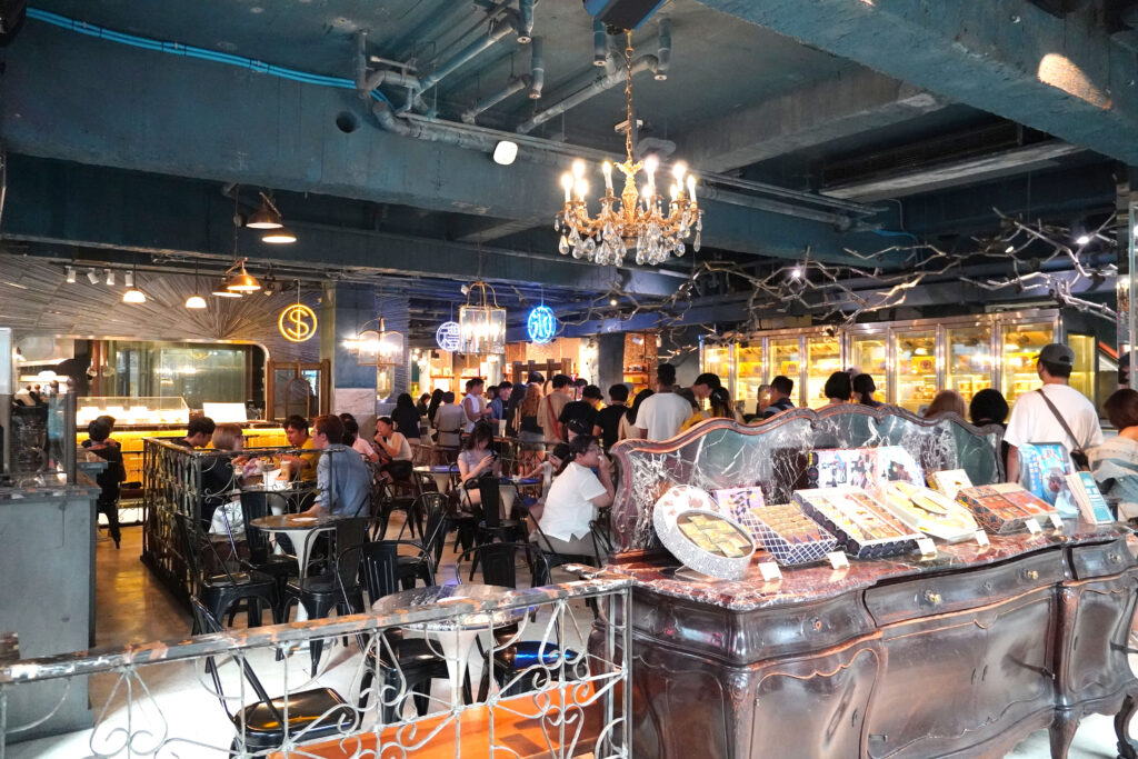 他們不僅將銀行金庫大門用於立面裝飾與室內空間區隔、原有的櫃檯規劃為座位區,各層樓間的通風氣窗也移至騎樓櫥窗前,形成多格式框架;而宮原眼科整修期間留下的木窗框,更應用於二樓的天花板裝飾。藉由這些老物件的組裝與展示,臺中四信總社大樓得以在現今作為冰品店的甜蜜氛圍下,保有金融機構沉穩俐落的特質,也將 1960 年代的建築美學匯聚其中。
