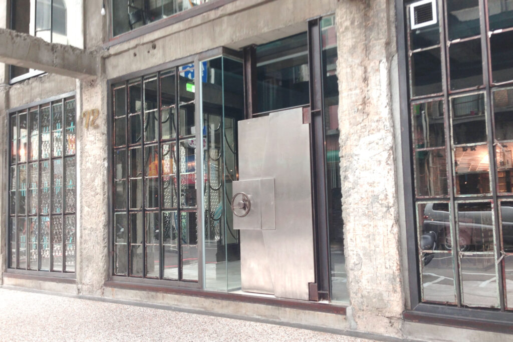 圖二/騎樓櫥窗的多格式框架與金庫大門設計,形塑出新舊結合的美學。(影像來源/黃廣華老師提供)