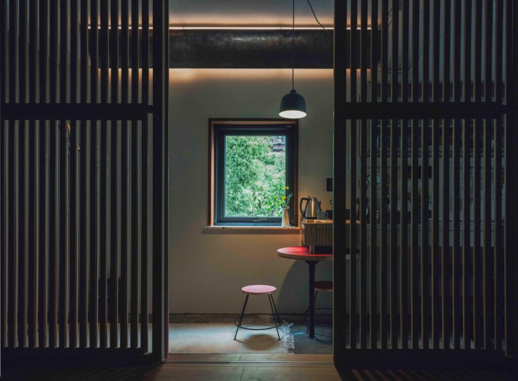 圖三/纖細的格柵門片設計,提升了長型街屋中段的採光效果。(影像來源/RisK 粉絲專頁)