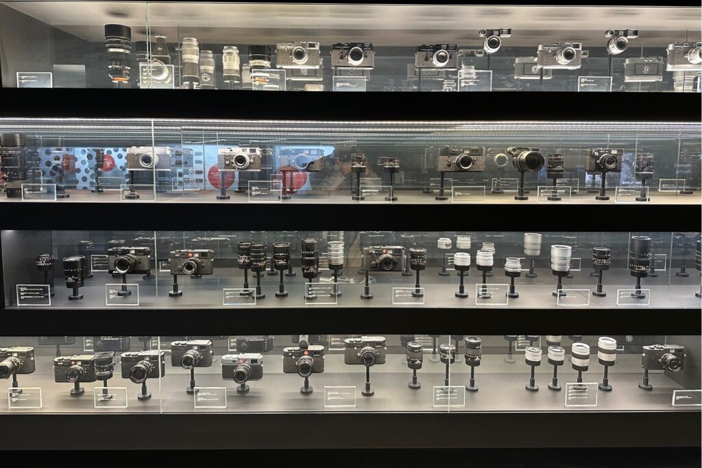 徠卡相機歷史館中,綿延數十公尺的相機展示牆中陳列著品牌成立百年以來的所有相機與配件款式。展示牆的另一側為相機工廠,透過玻璃窗即可見到穿著無塵服的技術人員將零件組裝為相機的過程。