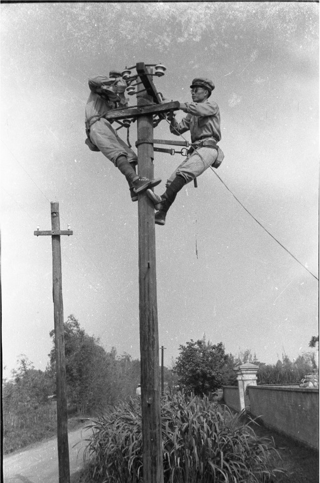 ▲徠卡園區旅館牆面上一幀以電線桿維修工為主題的影像(右),和許蒼澤攝影家的一件作品(左)非常相似。