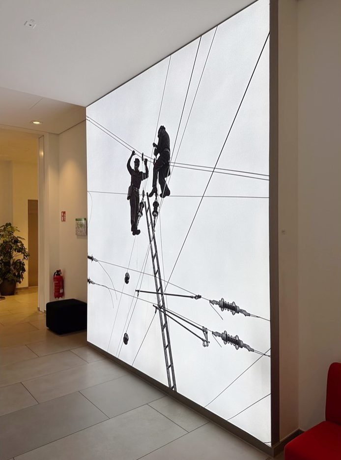 園區內部的空間設計,多與徠卡相機百年以來的攝影作品相關。許正園醫師觀察到,徠卡酒店牆面上一幀以電線桿維修工為主題的影像,和父親的一件作品非常相似——若是細看許蒼澤攝影家的作品,可以發現電線桿仍為早期使用之木造結構,記錄了臺灣基礎建設現代化的歷程。