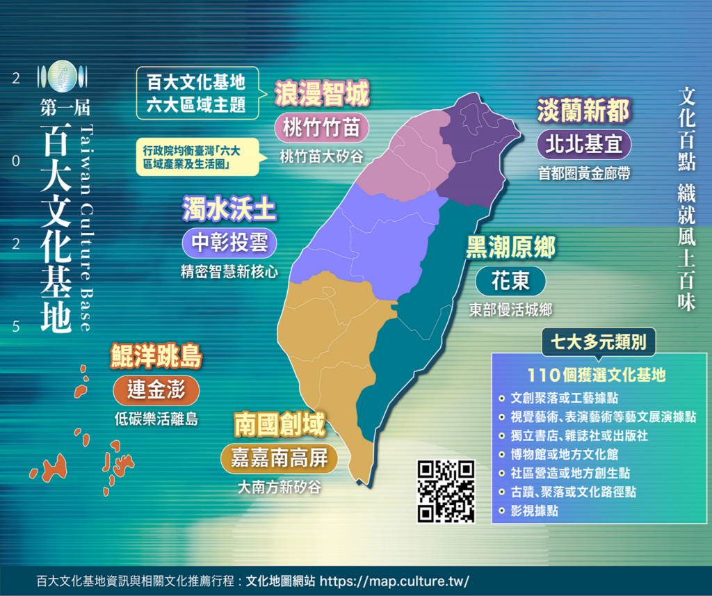 「第一屆百大文化基地」共選出110處場域,推動臺灣各地文化永續經營。(影像來源/文化部文化地圖網站)