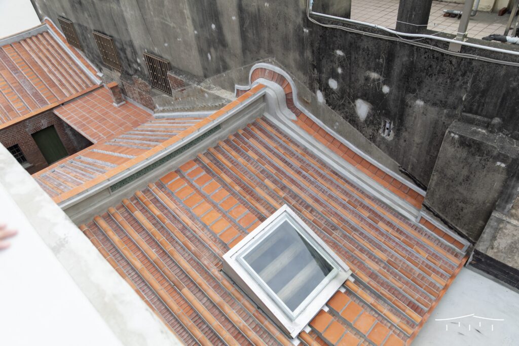 圖二/屋頂修復是全棟工程中最具挑戰性的項目。雄本團隊並非單純予以修復,更補強了瓦片堆疊結構,並以精巧的「吊瓦」工藝,銜接共用壁兩側建物,有效阻絕雨水滲入牆面。