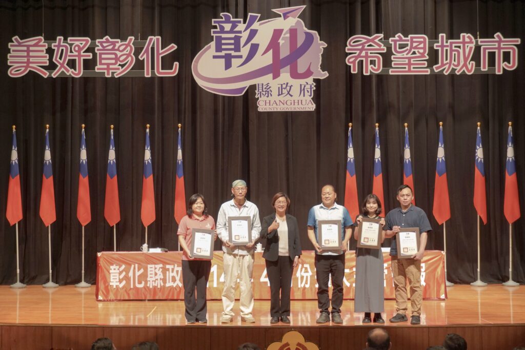 彰化縣長王惠美(右四)與彰化縣內獲選百大文化基地的夥伴們合影。「長源醫院-鹿港歷史影像館」由負責場館營運規劃的雄本老屋跨領域規劃部-蔡郁萱主任(右二)代表受獎。