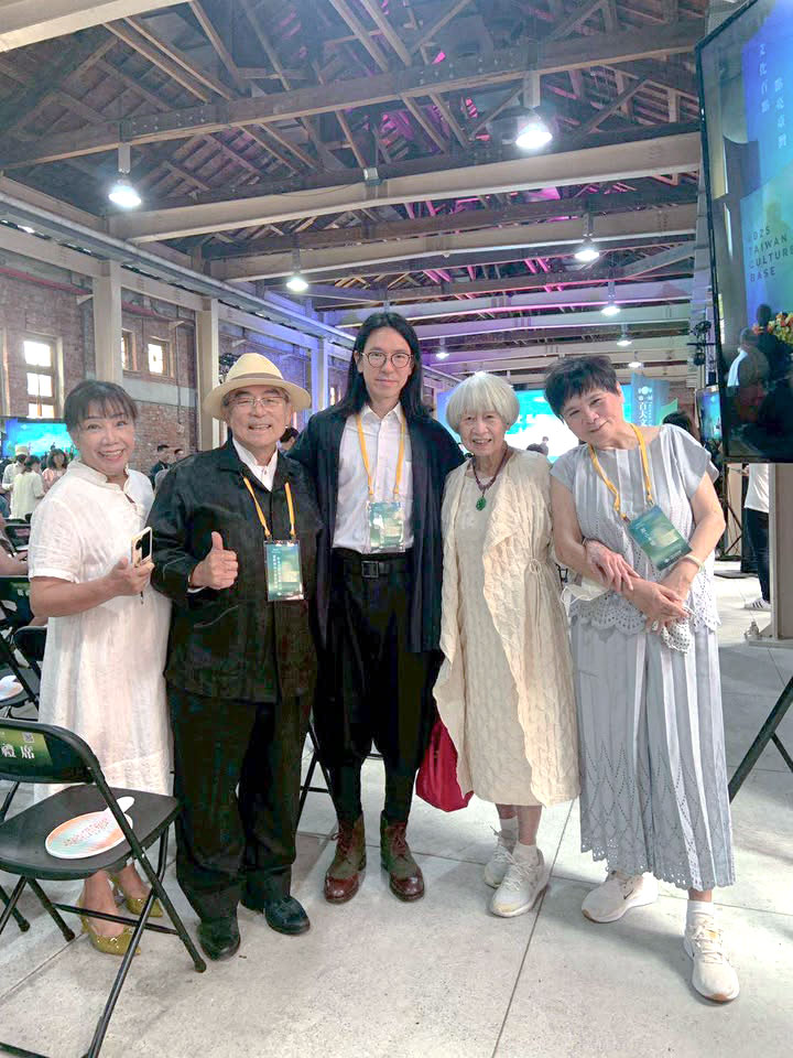 圖二/首屆百大文化基地涵蓋了許多同樣長久耕耘地方的夥伴們。圖為源古本舖博物館實驗平台-古正君負責人(右一)與母親古廖玉昭(右二)、雄本老屋蕭定雄共同創辦人(右三)、霧峰林家宮保第園區-林俊明董事長(右四)等人合影。(影像來源/古正君提供)